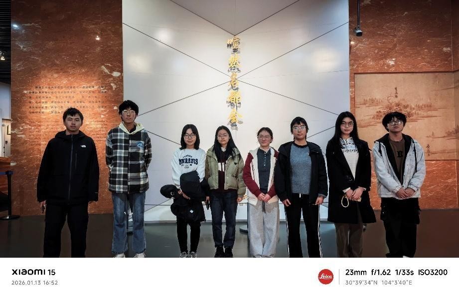 1月13日,2025级统计学专业2班团支部成员组成“返家乡”社会实践团队,前往成都博物馆开展以“青春为中国式现代化担当”为主题的科学家精神微团课创作实践。活动旨在通过实地调研,挖掘成都历史中的科学元素,传承和弘扬科学家精神,激发青年学子的家国情怀与责任担当。
