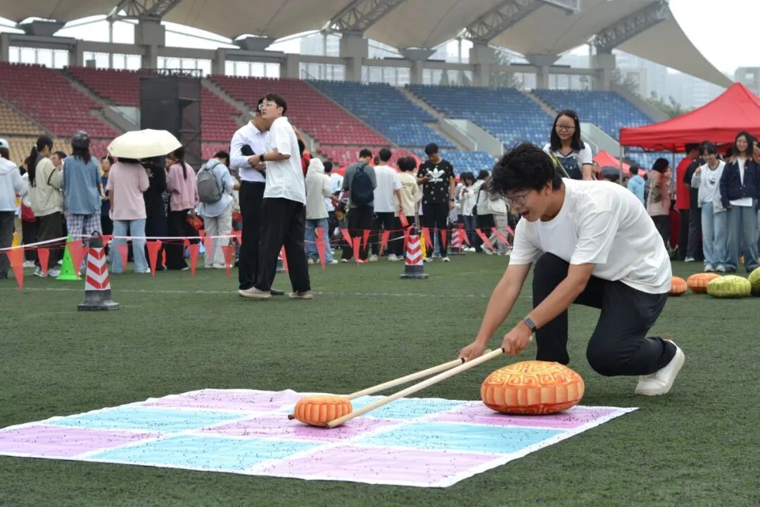 升旗仪式结束后,“我和祖国共成长”主题游园会在北区田径场举行,本次游园共开展“月满九宫,飞盘逐梦”“双节同庆,巧手纳福”“月满华诞,艺起团圆”等二十余项精彩纷呈的活动项目。数学学院学生会精心策划的“月饼三子棋”游戏摊位趣味十足,呼应了“双节同庆”的美好寓意。参与者们在博弈间体味逻辑的妙趣,在欢笑中感受文化与科学的交融。