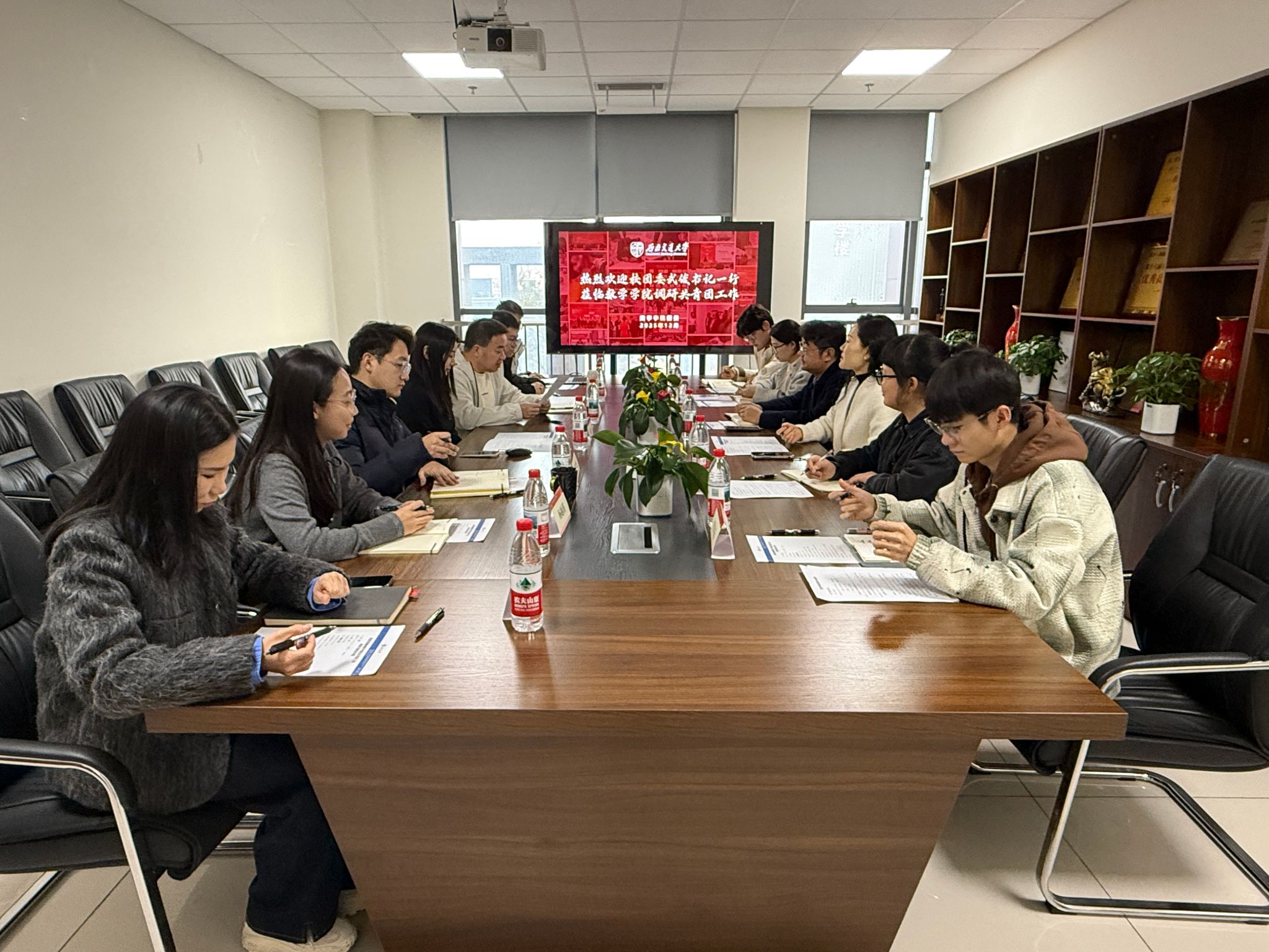 12月23日上午,西南交通大学团委书记武俊、副书记李娜,校团委各科室工作人员及学生骨干代表一行莅临数学学院,开展共青团工作专项调研座谈。数学学院团委书记张素子及团委委员、专项工作负责人参加会议,会议由党委副书记黄祥主持。