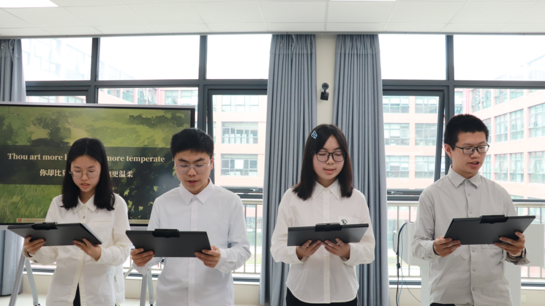 分享环节中,学员们依次登台,深情朗诵莎士比亚《十四行诗第18首》节选与《诗经·秦风·蒹葭》。西方诗作的温婉浪漫与东方古诗的空灵悠远交相辉映,大家以真挚声韵诠释中西经典,让在场师生沉浸式感受文学韵律与文化底蕴,在琅琅书声中领略经典魅力,为分享会注入了温润的人文气息。